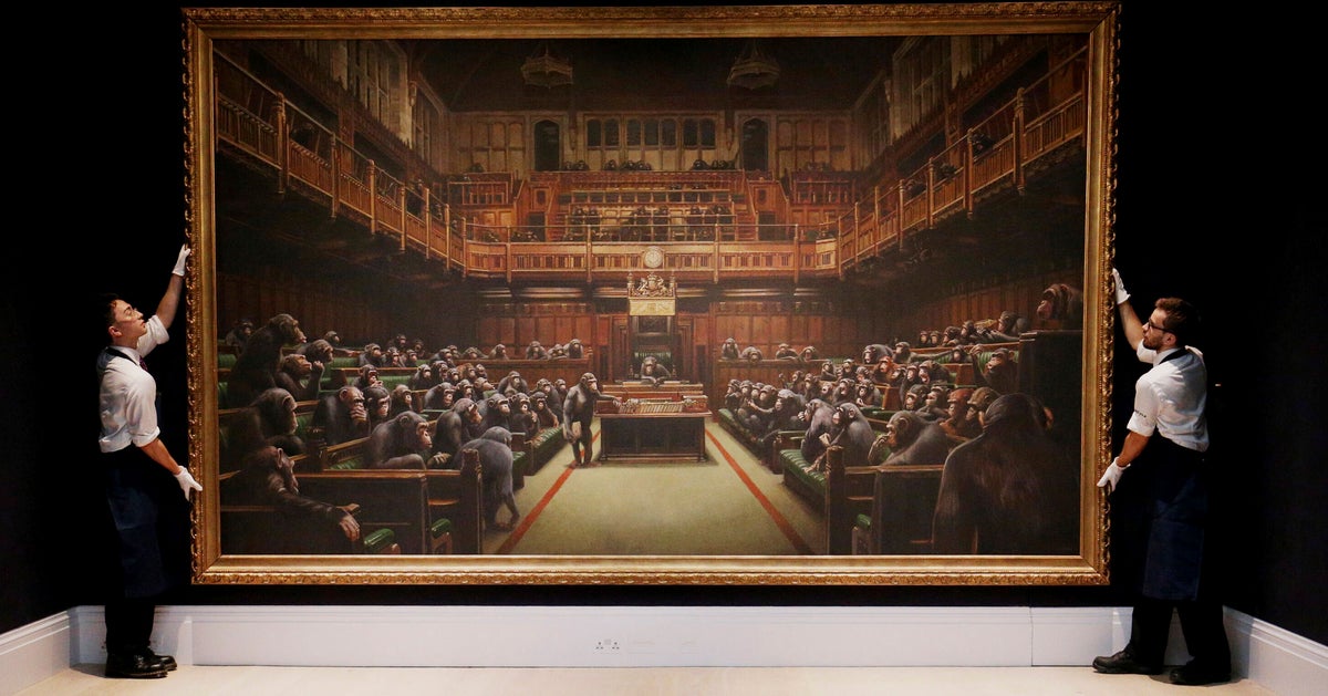 バンクシー作品で過去最高額 猿の議会 絵画に13億円 写真7枚 国際ニュース Afpbb News