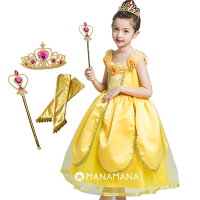 Amazon Manamana ベル ドレス キッズ プリンセスドレス イエロー ティアラ スティック グローブ 4点セット 110cm キッズコスチューム おもちゃ